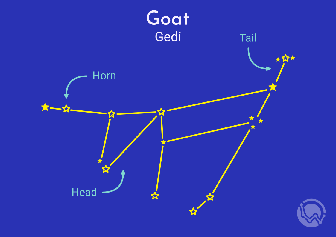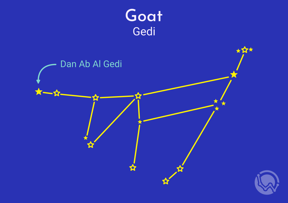 The Hebrew Name of the constellations is Gedi (גדי), meaning kid or a young male goat. This word is often used in the Hebrew text of Scripture to describe young goats used for sacrifices or gifts. The Goat has its neck slightly bowed, in submission to be slaughtered.